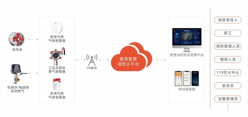 豪恩可燃氣體報警系統可實時監(jiān)測天然氣、液化石油氣、氫氣、異丁烷、一氧化碳等多種可燃氣體泄漏,并現場聯動控制和遠程提醒用戶,實現火災隱患快速處理。