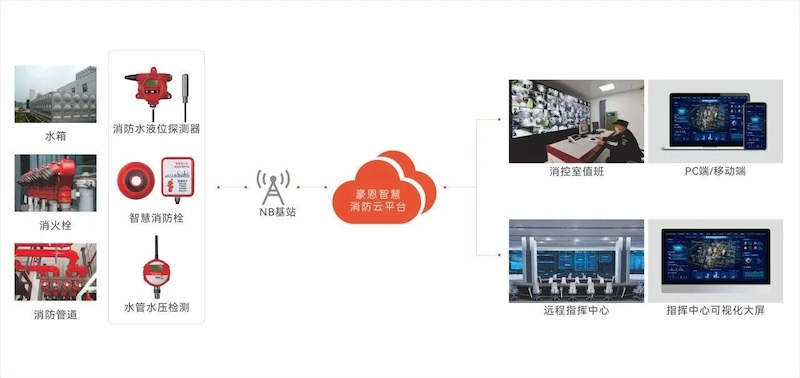 豪恩消防用水監(jiān)測系統采用水管水壓檢測器、消防水液位探測器、蓋帽式智慧消防栓和背帶式智慧消防栓等設備,實時監(jiān)測消防管網水壓不足、運行故障、非法取水等異常情況,遠程告警,及時維保,確保救火時有水可用。