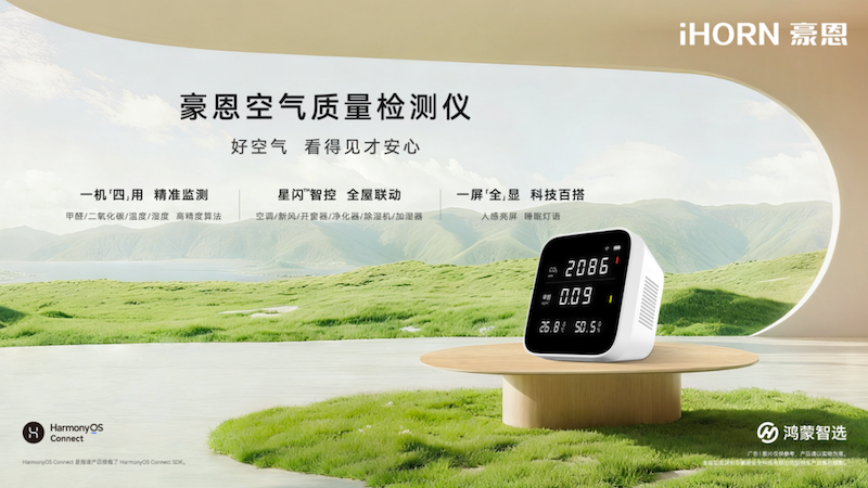 即日起,豪恩空氣質(zhì)量檢測儀已在華為商城及華為鴻蒙智家門店同步發(fā)售。