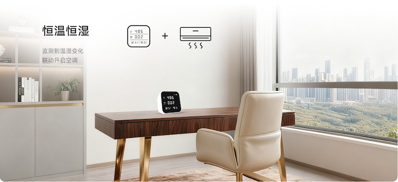 恒溫恒濕:當(dāng)豪恩空氣質(zhì)量檢測儀監(jiān)測到溫濕度異常時(shí),自動(dòng)開啟空調(diào)或加濕器,營造舒適居家環(huán)境,呵護(hù)家人健康。