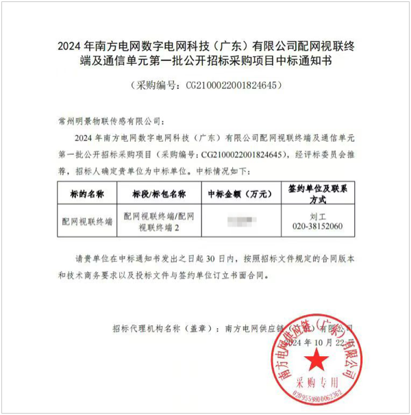 此次中標(biāo)南方電網(wǎng)項(xiàng)目,標(biāo)志著明景正式成為南方電網(wǎng)數(shù)字電網(wǎng)科技公司的直接供應(yīng)商,不僅彰顯了明景的專業(yè)實(shí)力和市場(chǎng)競(jìng)爭(zhēng)力,也為公司的未來(lái)發(fā)展注入了新的動(dòng)力和活力。通過(guò)深化與南方電網(wǎng)的攜手合作,推進(jìn)安防技術(shù)在電力行業(yè)的革新應(yīng)用,為南方電網(wǎng)的數(shù)字化轉(zhuǎn)型與智能化升級(jí)添磚加瓦。